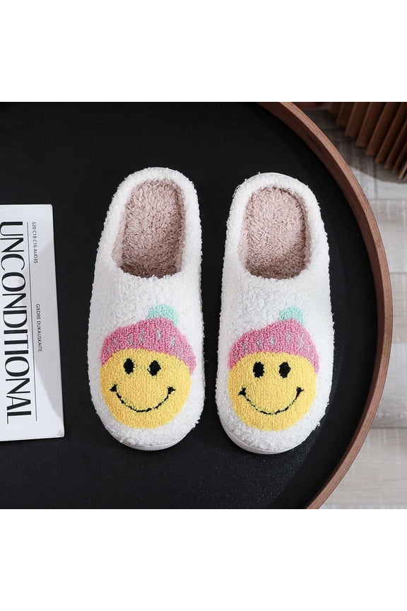 Cozy Cartoon Smiley Face Couple's Winter House Slippers - Thick Sole Warm Anti-Slip Indoor Plush Slides for Men & WomenEmoji Smiley Face Slippers for Women Anti-Slip Soft Plush Comfy Indoor Slippers Size 9/10 $15.99