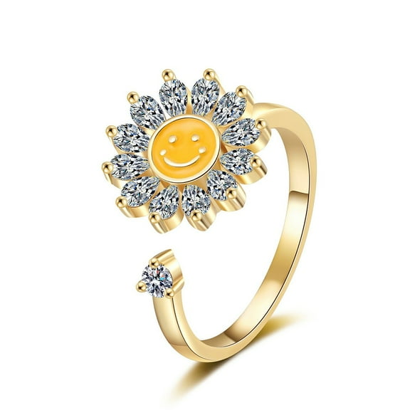 current price $15.29Sunflower with Smiling Face Enamel Rotatable Cuff Rings for Women Brass Cubic Zirconia Fidget Spinner Rings for Calming Worry Meditation Golden Inner Diameter: 17mm