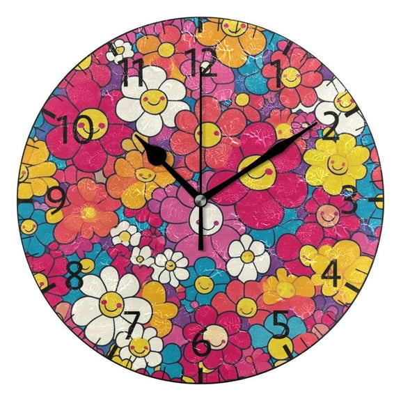 BZSMCE Wall Clock Acrylic Size:9.5*9.5in/11.9*11.9in Vibrant Smiles in Bloom Design Pattern Clock From $27.99