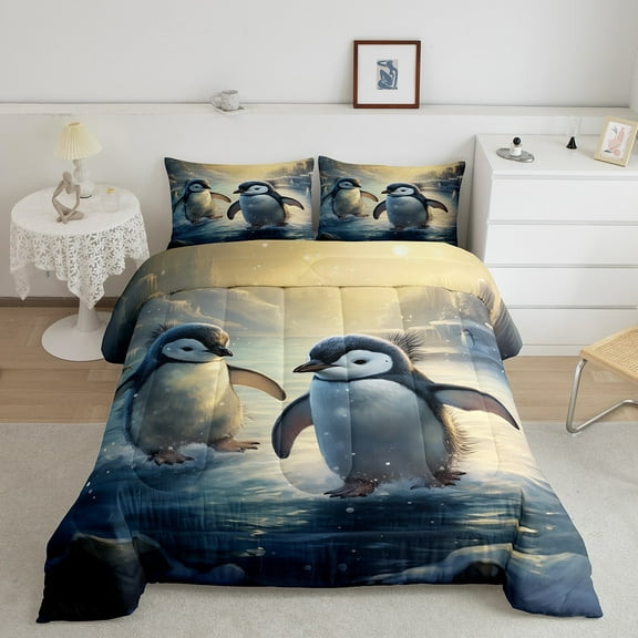 Erosebridal Cute Penguin Twin Comforter Set Antarctica Penguin Bedding Set,Animals Down Comforter 3D Winter Snow Bedding Comforters & Sets Home Decor,Lightweight 2 Piece From $17.99