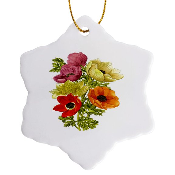 3drose, Anemone Floral Pattern Vector Cut Out, 3 inch Snowflake Porcelain Ornament From $14.89