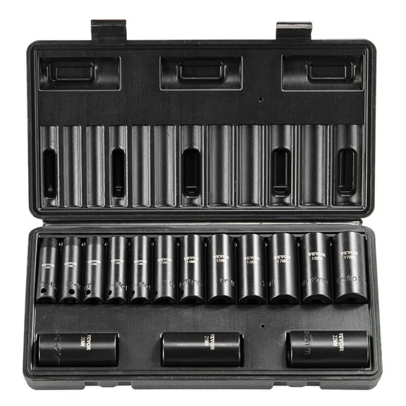 VEVOR Drive Impact Socket Set 3/8" - 18 Piece Deep Socket Set Metric 8-22mm - 6 Point CR-V Alloy Steel for Auto Repair - Easy-to-Read Size Markings - Rugged Construction Includes Storage Case $29.99
