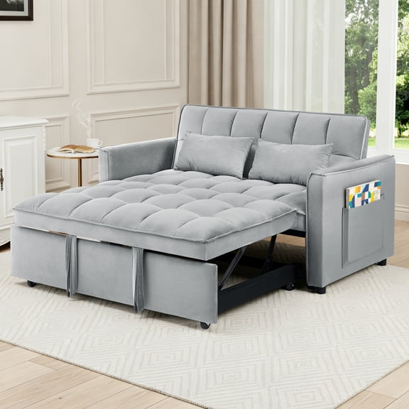 Gewnee Light Grey 52.75" Convertible Sleeper Sofa Bed with Adjustable Backrest, Storage Pocket & Solid Wood Frame for Living Room From $169.99