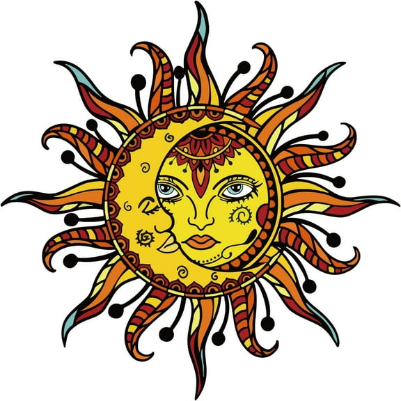 current price $9.50Moon and Sun Stickers Mandala Arts Full Color Wall Decal Sticker Poster Day Night Solar Eclipse Vinyl Stickers Crescent Ethnic Dual Symbol for Living Room Decoration for DIY
