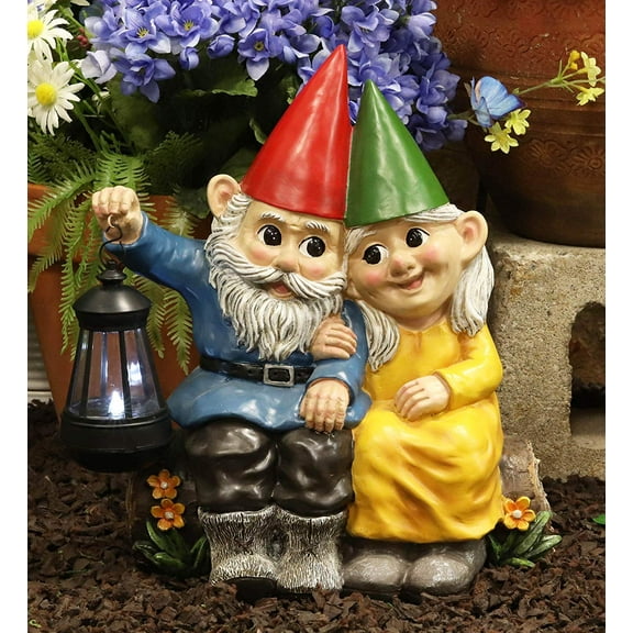 Ebros Large Mr and Mrs Gnome On Tree Log Solar LED Lantern Light Statue 13.5"H $79.50