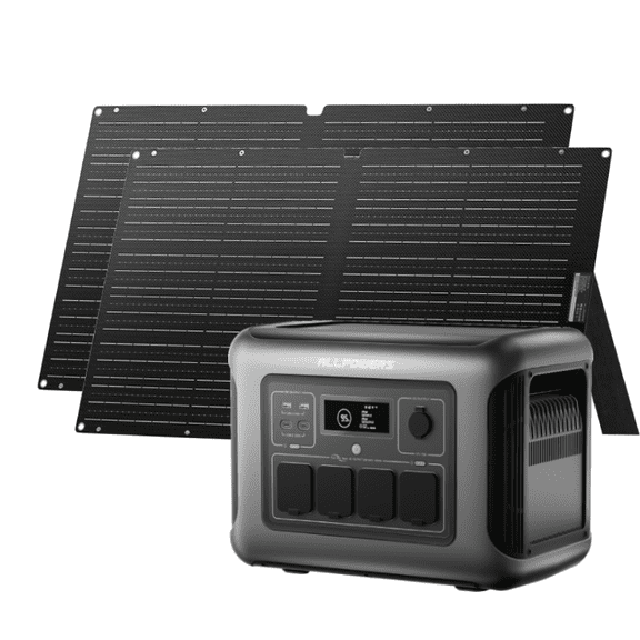 ALLPOWERS Solar Generator Solar Generator R1500 LITE with 2 x 100W Solar Panel, 1056Wh LiFePO4 Portable Power Station, 1600W AC/100W USB-C, for Off-Grid Living, RV, Emergency, Outdoor