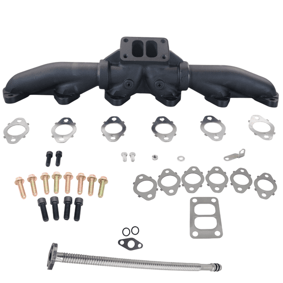 current price $539.99Diesel Power Source Complete T3 Exhaust Manifold Kit with Gaskets, Bolts & 25" Turbo Oil Drain Tube for 1998-2002 Dodge Ram 5.9L 24V Cummins High Flow Performance Direct Bolt-On
