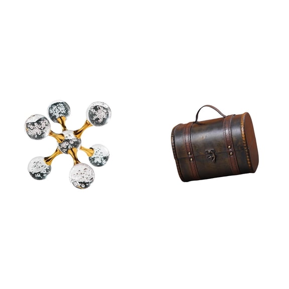 2 Pieces Sphere Figurine Desktop Decorative Box Wood Glass Material for Home Office Living Room $47.83