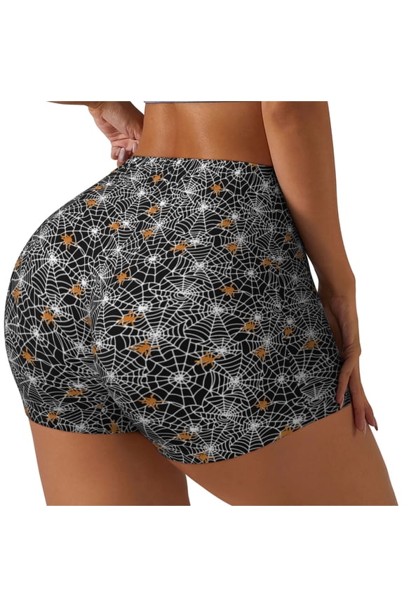 Seamless Workout Shorts Women - Spiders Insects Biker Gym Running Yoga Spandex Shorts for WomenSeamless Workout Shorts Women - halloween Spider web print Biker Gym Running Yoga Spandex Shorts for Women