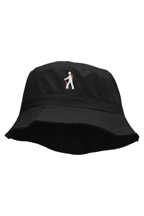 Hiking Man Symbol Embroidered Bucket Hat - Black OSFM From $26.99