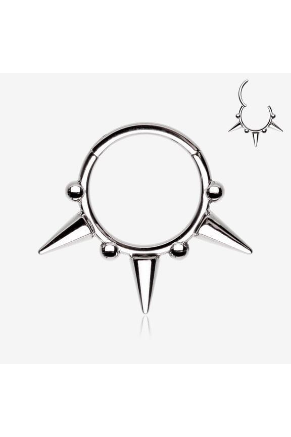 GHRTGR-Titanium Septum Ring, Spike Septum & Conch Piercing JewelrySpike Tribal Luna Orbit Seamless Clicker Hoop Ring