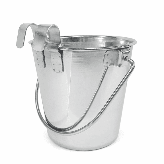 PetYupp Heavy Duty 2 Quart Stainless Steel Flat Side Bucket with 2 Hooks for Dogs