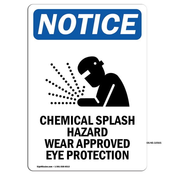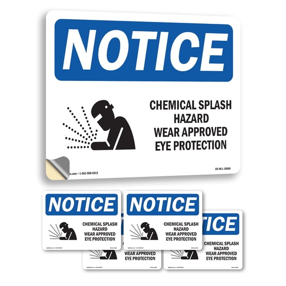 OSHA Notice Sign - Chemical Splash Hazard Wear Sign With Symbol | Decal | Protect Your Business, Construction Site | Made in the USA From $10.99