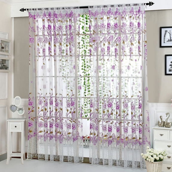 current price $11.85Fashion Pastoral Style Translucidus Window Curtain Tulip Flower Pattern Split Curtain For Living room bedroom