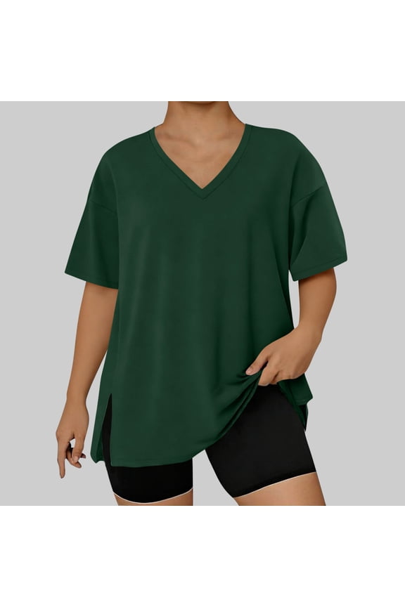 Women's Oversized T-Shirts Side Split Crew Neck Tee Shirts Short Sleeve Plain Casual Loose TshirtsPopular in Split Sided Shirts