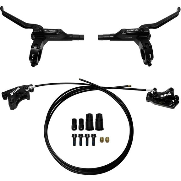 current price $62.99ZTZ 4-Piston MTB Hydraulic Brake Set, Left Front 850mm and Right Rear 1600mm Hydraulic Disc Brake Kit with PM/is Adapter, Fits for eBike, Mountain Bike and BMX