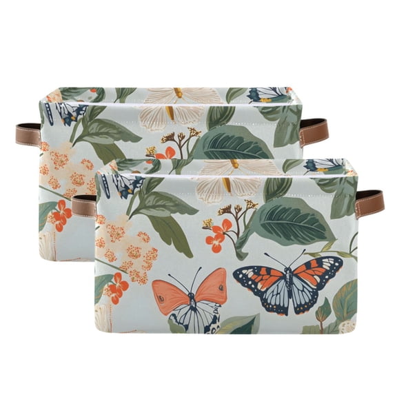 Ryvnso Spring Butterflies Floral-a8 Storage Basket Large Bin Foldable Boxes Toys Organizer 14.2x10.2x8.3in 2 PCs
