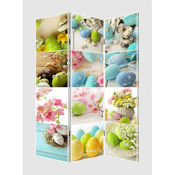 3 Panel Reversible Easter Spring Art Room Divider Screen