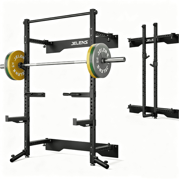 Folding Wall Mounted Squat Rack,1000 lbs Capacity Power Rack for Home Gym,Space-Saving Foldable Squat Rack with Pull-Up Bar & Landmine,Heavy-Duty 2.36" x 2.36" Steel Frame Power Cage From $209.99