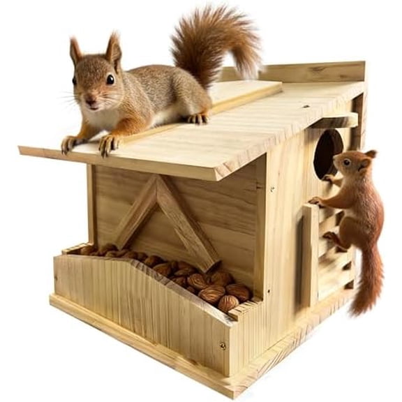current price $83.99Natural Cedar Squirrel House with Feeding Shelf - Handmade Outdoor Nesting Box for Squirrels, Chipmunks & Wildlife - Cozy All-Weather Shelter, Easy Install for Backyard, Tree, or Fence