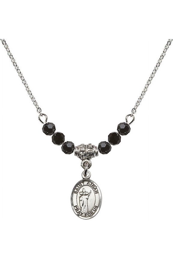 Sterling Silver St. Aidan Of Lindesfarne Pendant 1/2 x 1/4 inches with SS Lite Curb Chain18-Inch Rhodium Plated Necklace with 6mm Jet Birth Month Stone Beads and Saint Aidan of Lindesfarne Charm $95.95