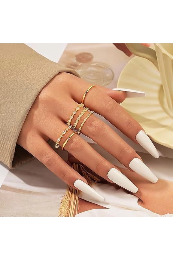 Women's Silver Ring Set, Chunky Stackable Cubic Zirconia Ring Set (Tarnish Resistant), White Gold Multi-link RingChunky Rings Set for Women Gold Plated Thick Dome Stackable Open Rings Trendy Dainty Minimalist Jewelry GiftsGolden $8.99