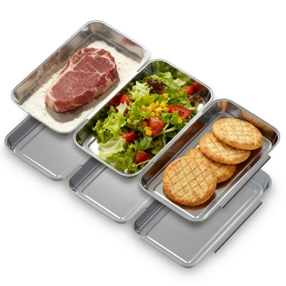 3-Piece Kitchen Essential Breading Tray Set: Stainless Steel Stackable Trays - Oven Safe, Durable for Marinating, Coating & Catering Use $20.99