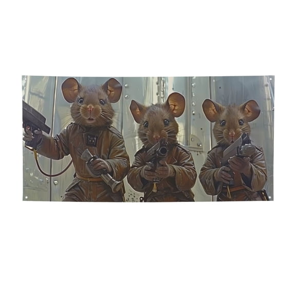 Picia Steampunk Space Mice Warriors Pattern Party Banner, Festive Decoration, Holiday Banner, Celebration Decor, Event Banner, Reusable Party Banner-Small