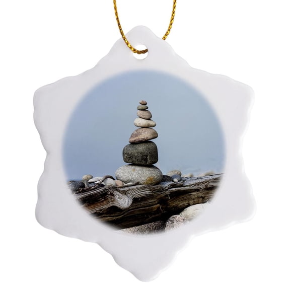 Available in additional 2 options3drose, Balanced Stone Cairn Zen Style in Water, 3 inch Snowflake Porcelain Ornament
