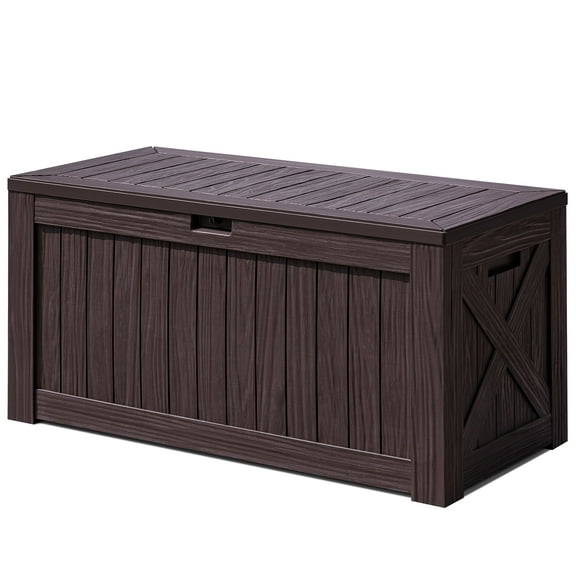 AIZYT 30 Gallon Resin Deck Box Outdoor Indoor Waterproof Storage Box for Patio Furniture Pool Accessories Storage for Cushion Garden Tools (30 Gallon, Brown)$41.60current price $41.60Decksplore 80 Gallon Lockable Resin Deck Box, Waterproof & Outdoor Storage Box for Outdoor Cushion Storage and Outdoor Delivery Storage Coffee