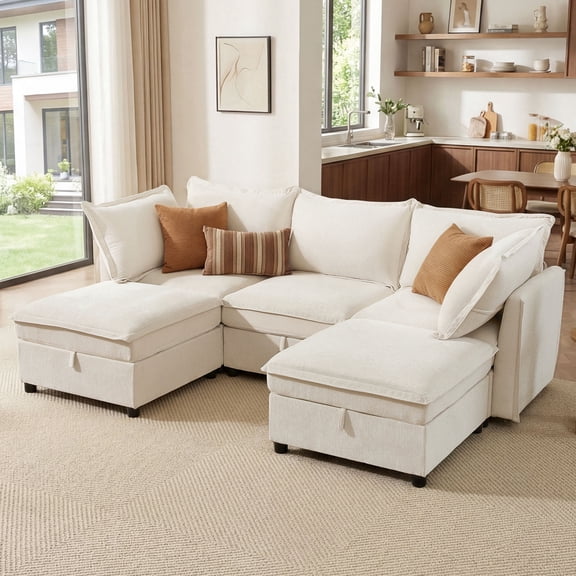 BedLuxury Modular Sectional Sofa with Storage, U-Shaped Modern Sofa Couch with Movable Ottomans for Living room, Office, Beige From $759.99