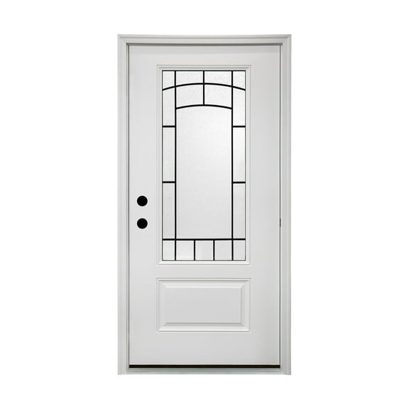 36 x 80 Smooth Fiberglass Entry Door with Brickmould,3/4 View Frosted Glass - Classic Style for Home's Front Entrance, Vinyl Frame, Right Hand Inswing,White Primed Knock-Down Door New Packaging $1,118.97