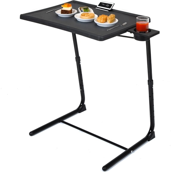 current price $51.86TV Tray Table, Folding TV Dinner with Cup Holder, Adjustable TV Desk with 3 Angle and 6 Height Adjustments, Couch Table for Eating on Sofa & Bed, Stowaway Laptop Stand, Black