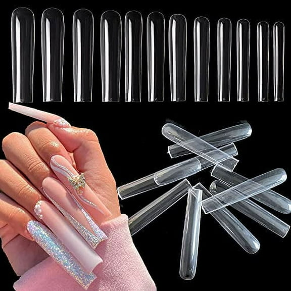 current price $32.95UNA GELLA Extra Long Nail Tips 400pcs No C Curve Nail Tips Clear Coffin Nails Tips Tapered Square Nail Tips Straight Nail Tips XXL Acrylic Nail Tips Fake Nails Long Tips 2 Style For Salon Ho