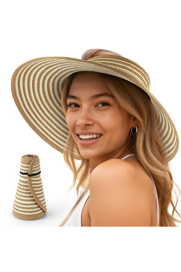 Women’s Sun Visor - UPF 50+ Protection, Wide Brim, Adjustable, Ponytail-Friendly, Packable - Ideal for Travel & Beach (US, Alpha, One Size, Straw)Women Floppy Sun Hat with Wide Brim—Foldable Roll-Up Straw Beach Hat UPF 50, XL Khaki From $17.99