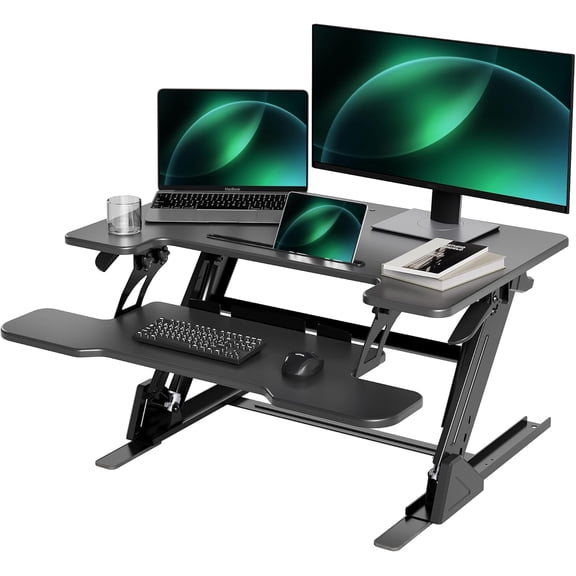 Rocelco Standing Desk Converter w/Dual Monitor Arm 31.5 in w/Tablet Holder Gray $211.07