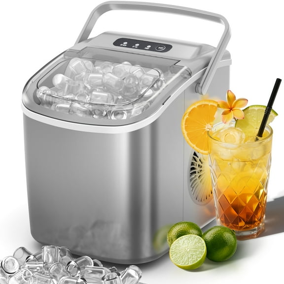 Auseo 26 lbs/24H Countertop Ice Maker Machine, 9 Bullet-Shaped Ice in 6 Min, Auto-Cleaning, Gray From $49.91