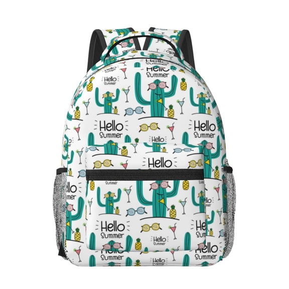 current price $37.99Rateoe Summer Cactus With Blooming Pattern Durable Student Backpack Laptop Bag- Ergonomic Design, Waterproof Twill Fabric - Ideal for School, Travel, and Outdoor Activities