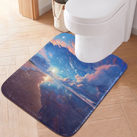 Toilet Rug Rectangle Bathroom Rugs Non-Slip Soft Plush Machine Washable Contour Bath Mat Beach Ocean Sun Cloud 24x16 From $17.99