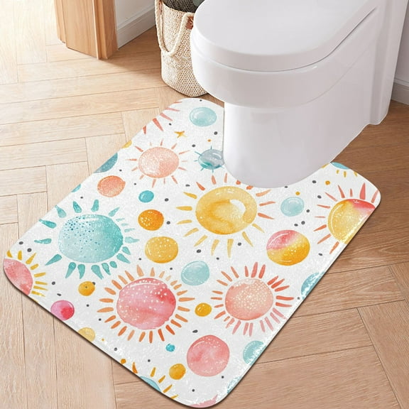Toilet Rug U-Shaped Bathroom Rugs Non-Slip Soft Plush Machine Washable Contour Bath Mat Watercolor Sun 24x20