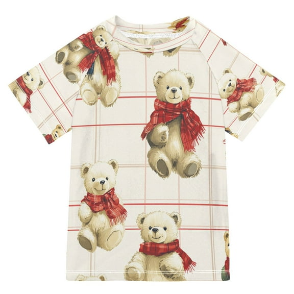BZSMCE Summer T-shirt Sunscreen Comfy Bears on Checkered Canvas Pattern Swim Tops From $14.07