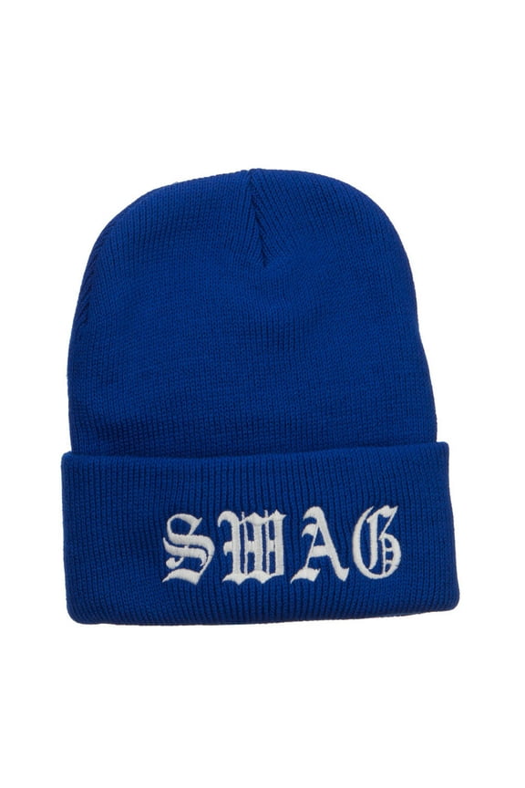 White SWAG Embroidered Long Beanie - Navy OSFMOld English Swag Embroidered Long Beanie - Royal OSFM From $21.49