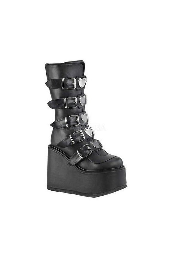 Demonia STOMP-223 Women's STOMP-223 4 3/4" WedgeDraped Platform Knee High Boots with Buckles$144.95current price $144.95Demonia SWING-815 Women's Mid-Calf & Knee High Boots, 5 1/2" P/F-Wht Vegan Leather-9