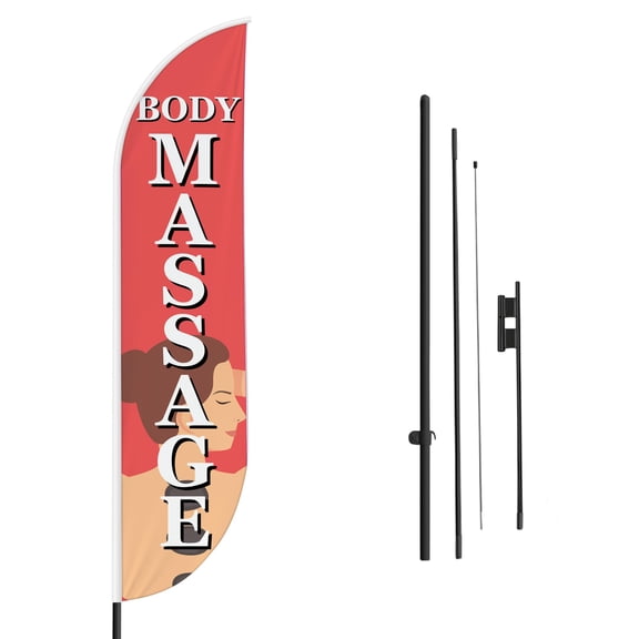 Body Massage Sign feather flag Pole Mount for Outdoor by Mavis Print | 15 FEET Long Polyester Outdoor Banner Flag with Pole Kit for Easy Hang | HD Print Swooper Flag Pole Mount for Salon Advertisi From $38.99