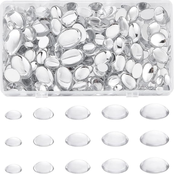 240 Pcs Clear Flat Back Oval Transparent Cabochons 5 Sizes Acrylic Rhinestones Cabochon Clear Flat Back Dome Cabochons $12.44