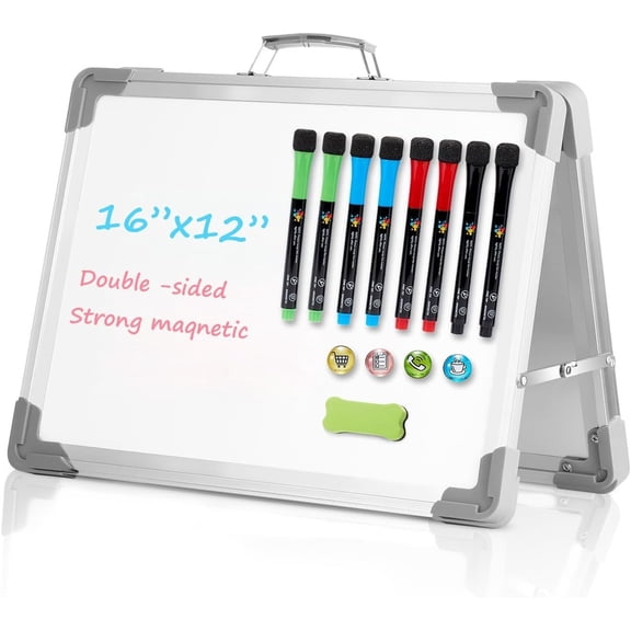 White Board Dry Erase 16" x 12", Portable Foldable Whiteboard Double Sided Desktop Dry Erase Board Easel Table with Holder for Classroom, Office, Homeschooling, School Supplies From $39.58