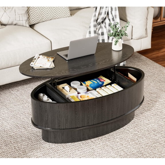 Oval Lift Top Coffee Table with Hidden Storage, 41 in Wooden Mid Century Modern Living Room Center Table, Black From $129.00