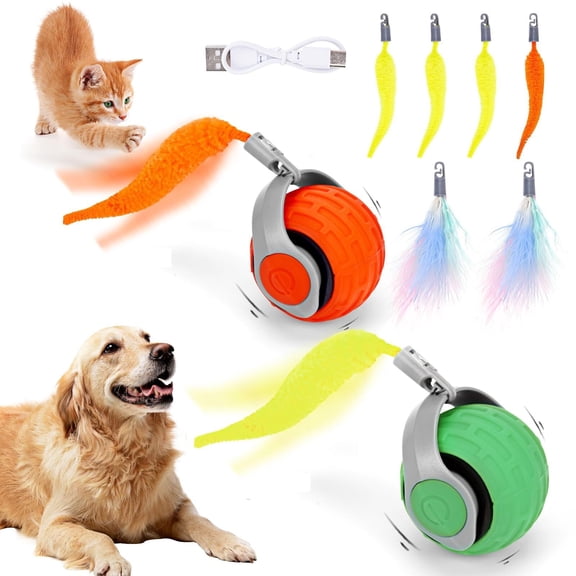 2PCS Cat Toy 3.0 Turbo Tail 2025 New Upgraded 300 mAh Pet Smart Chase Ball Interactive Cats Toy for Indoor Cats Smart Cat Ball Toy with 6 Replacement Tail (Orange&Green) From $15.98