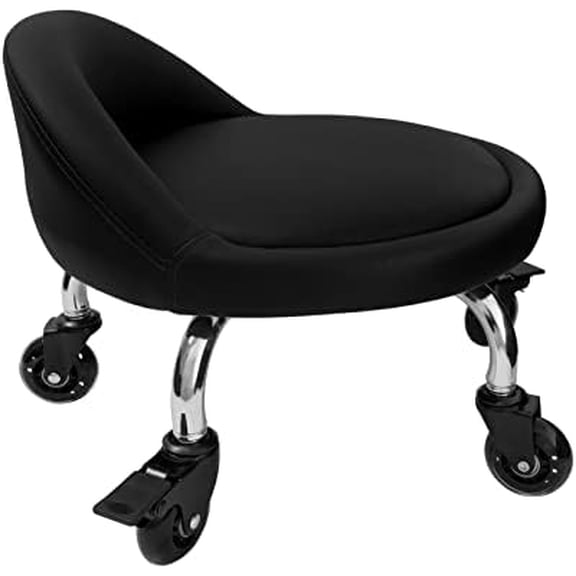 current price $82.16Rolling Stool with Backrest Low Height Roller Stool with Universal Swivel Caster Wheels for Home Office, Adult, Kids Chair, Garage, Library PU Leather Black$$Home Decor, Kitchen, & Other