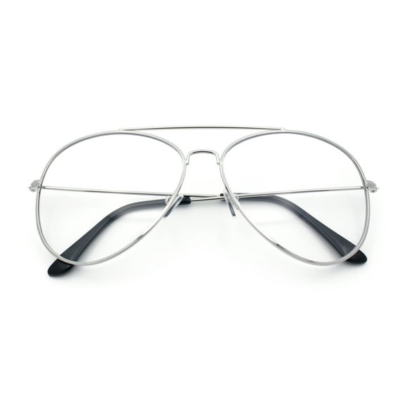 Trendy Oversized Officer Style Tear Drop Shape Metal Clear Lens Eyeglasses Shiny Silver